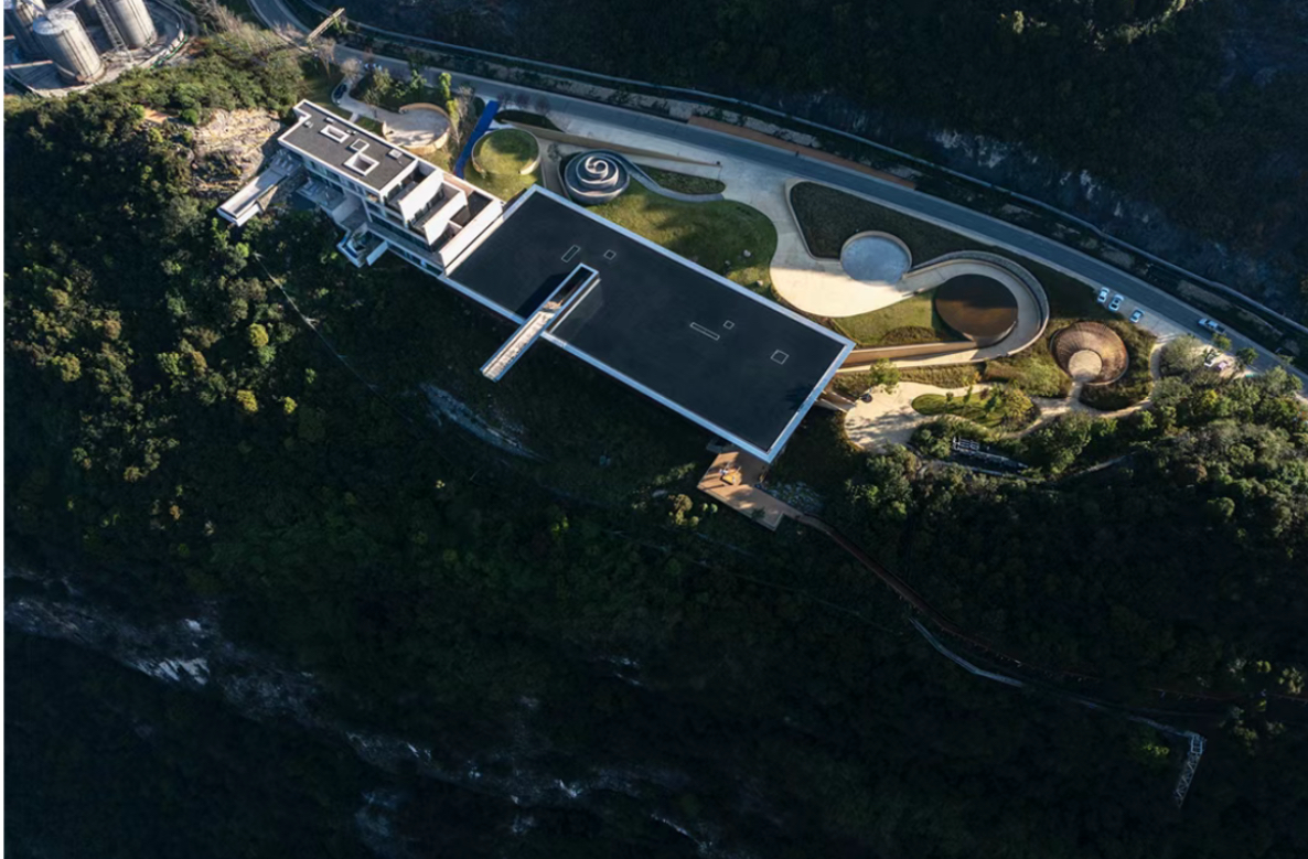 诚如所言,郎酒正是从赤水河流域千百年来流传形成的酿酒文明中汲取灵感,历时16年、耗资200亿,在赤水河左岸打造起世界级郎酒庄园,在庄园内,有无数“凝固时间艺术”的建筑。拿此次获得“2025法国AFEX奖”的郎酒庄园·敬天台来说,是一座覆土式地下建筑,巧妙地隐匿于山间绝壁。其2500平方米的镜面水池屋顶,连天接水,整体宛如悬浮在山谷间的“天空之镜”: